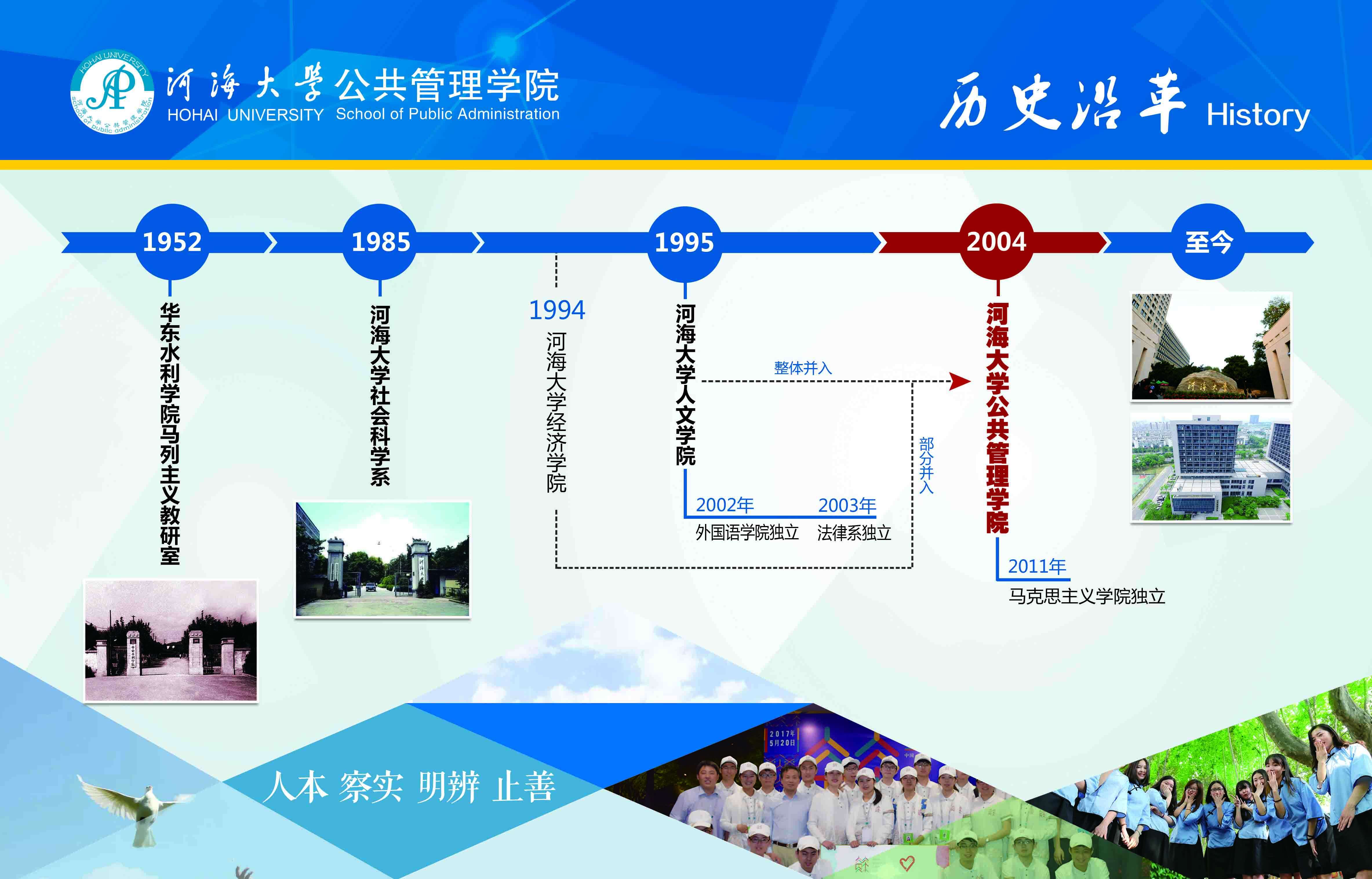 开云kaiyun官网的前身可追溯到1952年成立的华东水利学院马列主义教研室。1985年,成立了社会科学系。1992年根据经济和社会发展的形势和需要,成立了水利部移民研究中心。1995年,以社会科学系和外语系为基础,成立人文学院。2002年,外语系从人文学院中分出,单独成立外国语学院。2004年,人文学院(法律系行政独立)与移民研究中心整合为开云kaiyun官网。2011年,哲学系和政治学系从开云kaiyun官网分出,单独成立马克思主义学院。