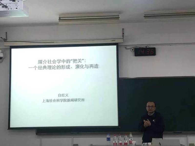 2019年11月22日下午14时30分,开云kaiyun官网“传媒视界”第37期学术分享会在江宁校区致高楼A205会议室举行。本次分享会主题为《媒介社会学中的“把关”——一个经典理论的形成、演化与再造》,主讲人为来自上海社会科学院新闻研究所的白红义研究员。新闻传播学系主任张杰教授主持了此次活动。