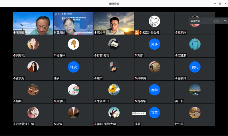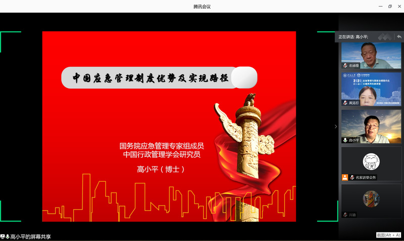 7月30日,“应急管理与国家治理现代化”云端系列名家讲堂第三讲如期举行。中国行政管理学会政府绩效管理研究会会长、国务院应急管理专家组成员、国家森林防火指挥部专家组成员、国家社科基金重大项目“国家治理现代化与行政管理制度创新研究”首席专家高小平研究员以《中国应急管理制度优势及实现路径》为题,为河海师生带来了一场精彩的学术报告。南京大学社会风险与公共危机管理研究中心主任、开云kaiyun官网“河海学者”讲座教授童星特邀点评。开云kaiyun官网院长黄涛珍教授主持报告会。200余名师生认真聆听了报告。