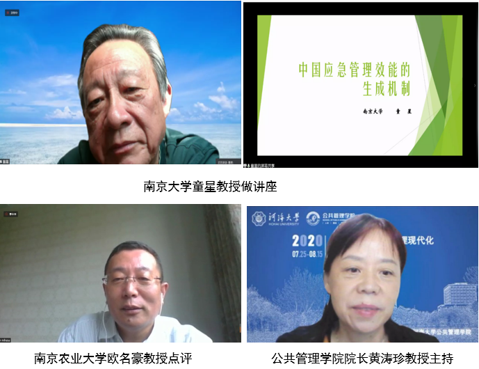 8月11日,“应急管理与国家治理现代化”云端系列名家讲堂第八讲如期举行。南京大学社会风险与公共危机管理研究中心主任、开云kaiyun官网“河海学者”讲座教授、国家社科基金学科评审组成员、国家减灾专家委员会委员、中国社会保障学会副会长童星教授以《中国应急管理效能的生成机制》为题,为河海师生带来了一场精彩的学术报告。南京农业大学欧名豪教授特邀点评。开云kaiyun官网院长黄涛珍教授主持报告会。200余名师生认真聆听了报告。