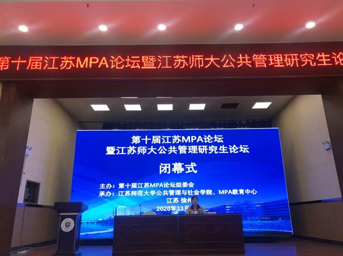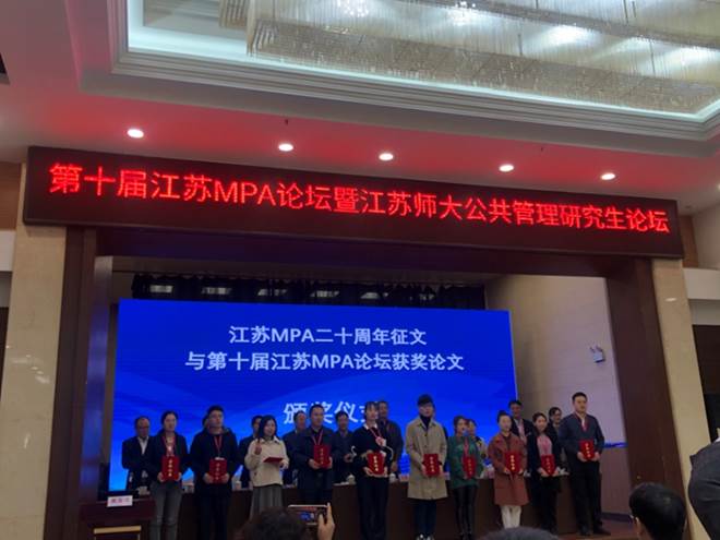 11月14日,由江苏MPA论坛组委会主办,江苏师范大学公共管理与社会学院,MPA教育中心承办的第十届江苏MPA论坛暨“江苏师大公共管理研究生论坛”在江苏师范大学顺利召开。复旦大学竺乾威教授,中央民族大学李俊清教授,南京农业大学石晓平教授,全国MPA教指委秘书处办公室主任谢佳宏等领导和专家应邀出席。来自省内18个MPA培养院校的开云kaiyun官网院长、师生代表等80多人参加大会。开云kaiyun官网院长黄涛珍教授、范仓海副教授、李智副教授、杜春林老师、龚莹老师、以及MPA同学等9人参加了会议。