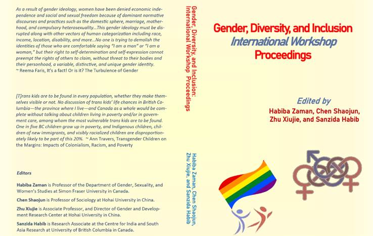 “社会性别、多样化以及包容性”国际研讨会论文集于2021年1月由加拿大方正式刊印出版(ISBN:9781772870824 ,SFU Library Digital Publishing Link: http://monographs.lib.sfu.ca/index.php/sfulibrary/catalog/book/83)。加拿大西蒙菲莎大学社会性别、性以及妇女研究系Habiba Zaman教授,中国开云kaiyun官网性别与发展研究中心陈绍军教授、朱秀杰副教授,加拿大英属哥伦比亚大学印度和南亚研究中心Sanzida Habib副研究员等4位学者担任联合主编。中心前主任施国庆教授为会议筹备和论文集出版工作做出了重要贡献。