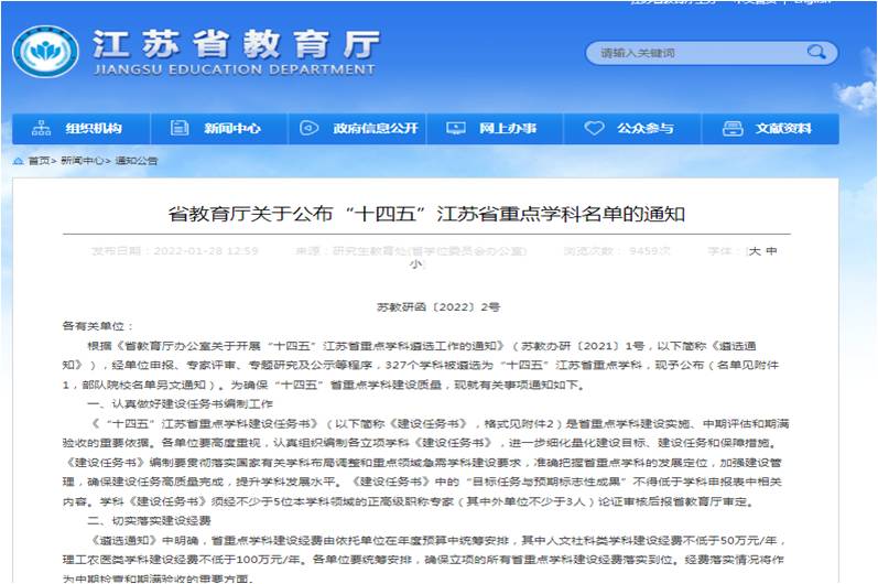 近日,江苏省教育厅公布了“十四五”江苏省重点学科名单,开云官网社会学学科成功入选A类,公共管理学科成功入选B类。是本次开云官网申报成功的10个学科之中2个文科类学科。