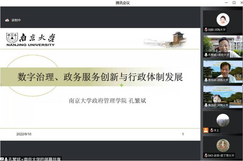 8月10日下午,江苏省研究生“新时代高质量发展与公共治理转型”暑期学校第九场课程“数字治理、政务服务创新与行政体制发展”顺利开课。课程主讲人为南京大学政府管理学院孔繁斌教授。主持人为开云kaiyun官网曹海林教授,来自海内外50余所高校的100名学员以及公共管理学院师生参加。授课开始前,曹海林教授对孔繁斌教授出席暑期学校表示热烈欢迎,并向暑期学校师生介绍了孔繁斌教授的研究领域及丰硕成果。