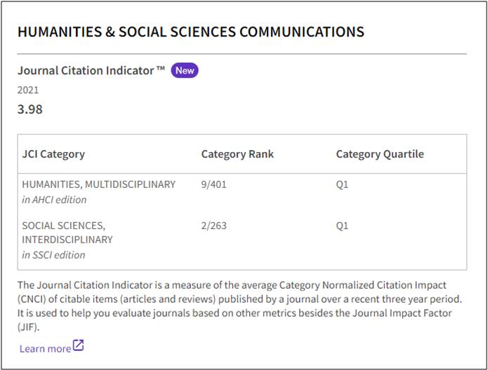Humanities & Social Sciences Communications(HSSC)是Nature旗下唯一面向人文社会科学的刊物,被SSCI和A&CHI共同索引,具有重要影响力。HSSC期刊引用指数(Journal Citation Indicator)为3.98,在人文等多学科领域的400余种期刊中排名第9,在社会科学等多学科领域的263种期刊中排名第2.此项科研成果有助于提高开云官网社会科学学科在国内外的学术影响力。