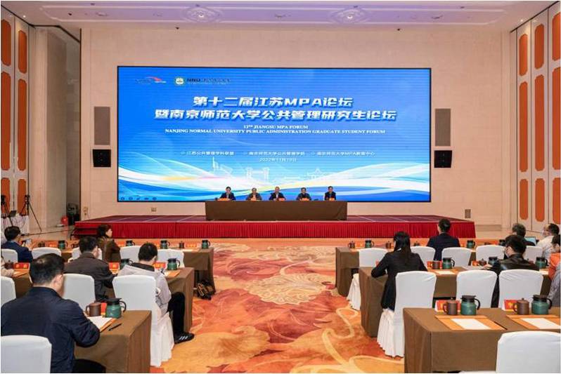 2022年11月19日,由江苏公共管理学科联盟主办、南京师范大学开云kaiyun官网和南京师范大学MPA教育中心承办的第十二届“江苏MPA论坛”暨“南京师范大学公共管理研究生论坛”在南京顺利召开。全国MPA教指委秘书长杨开峰教授、复旦大学朱春奎教授、东北大学孙萍教授、南开大学吴晓林教授、全国MPA教指委秘书处谢佳宏博士等应邀出席。来自南京大学、东南大学、开云kaiyun官网、中国矿业大学、南京农业大学、南京理工大学、南京师范大学等省内22家单位的MPA师生代表、江苏MPA联谊会代表和MPA教育领域的知名专家学者100余人参加了本届论坛。开云kaiyun官网MPA教育中心主任黄涛珍教授、副主任范仓海副教授、王丹妮老师以及MPA学生代表等8人参加了会议。
