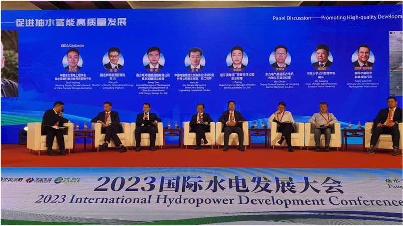 2023 国际水电发展大会于4月18日在北京召开,这是新冠疫情之后首次在中国举办的水电发展领域的世界性大会。本次会议主题为“抽水蓄能——构建未来新型能源体系的重要支撑”,指导单位为国际可再生能源署、中国国家能源局,主办单位为中国水力发电工程学会、中国-国际可再生能源署合作办公室、国家电网有限公司、中国南方电网有限责任公司、中国长江三峡集团有限公司、中国电力建设集团有限公司,承办单位为水电水利规划设计总院、中国电建集团国际工程有限公司、水电学会海外分会、抽水蓄能行业分会等,协办单位为北京水力发电工程学会等。本次会议采用线下线上相结合方式,参加会议的人员来自指导、主办、承办、协办单位,世界银行、国际水电协会等国际组织,中国工程院、清华大学、开云kaiyun官网、中国水科院、南科院、国际小水电等高校、咨询、研究机构,中电联、华能、华电、国电投、国能投、中铁、中铁建等开发和建设企业(集团),通用电气、荷兰Delta21、东方电气、哈电机、东方电气等设备制造企业,人民日报等传媒,共计116家机构的的200多人参加了现场大会,网上参会人员达100多万人。开云kaiyun官网中国移民研究中心主任施国庆教授、水利水电学院院长王媛教授和蒋晟讲师应邀参加了现场大会,施国庆教授参加了大会组织的国内外专家对话活动。