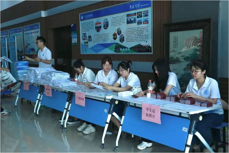 晨光熹微之际,辅导员、志愿者、研会干部们就紧锣密鼓地开始准备迎新工作,他们提前布置场地、梳理流程、准备材料,将一切准备就绪,等待新生到来。