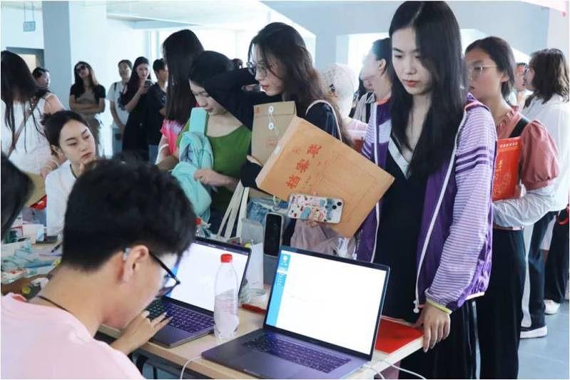 张莉婷与任丽雪两位老师在报道伊始便驻扎现场,全程指导并参与报到工作,细心为新生及新生家长们答疑解惑,保障每一位新生顺利入学。