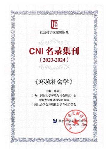 2023年10月26~27日,由社会科学文献出版社及西北大学联合主办的第十届人文社会科学集刊年会在陕西西安召开。本届年会主题为“新起点·新征程——学术集刊与‘三大体系’建设”,来自中国社会科学院、社会科学文献出版社等单位的专家和代表,国内外高校及科研机构的学术集刊主编、编辑部代表等莅临参会。会议公布了2023-2024年社科文献CNI名录集刊名单和2023年度优秀集刊、优秀新创集刊名单。《环境社会学》集刊获评CNI名录集刊。