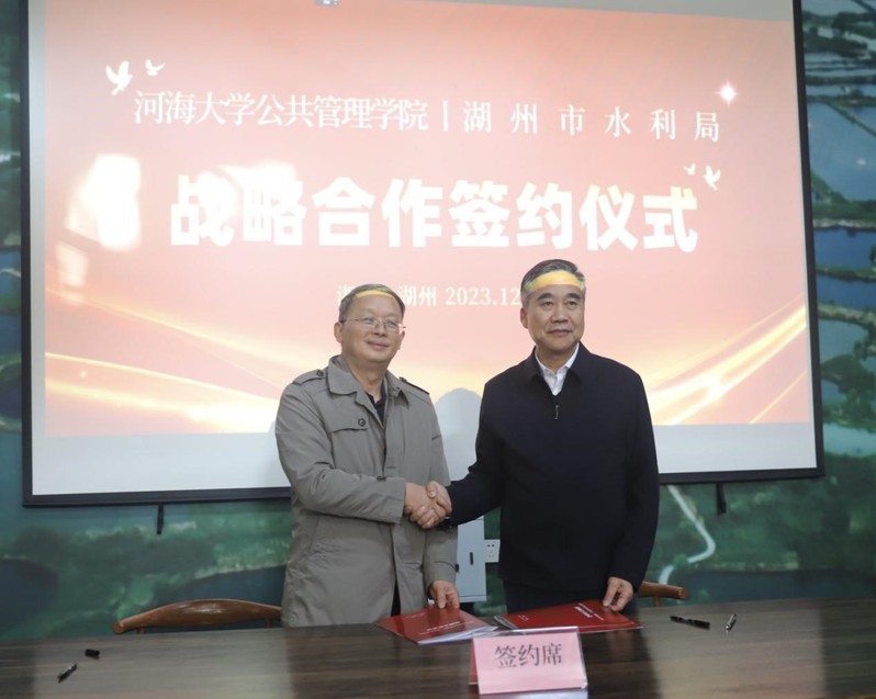 12月14日,开云kaiyun官网与浙江省湖州市水利局举行战略合作协议签署暨“开云kaiyun官网学生实践基地”揭牌仪式。河海大学开云kaiyun官网党委书记蒲晓东,罗亚娟副教授,高新春老师,湖州市水利局党组书记、局长龚丁,湖州市水利局党组副书记、副局长吴继国,吴兴区水利局、织里镇镇政府负责人等出席会议。会议由吴继国副书记主持。