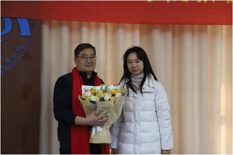首先,朱新华院长向余文学教授颁发荣休纪念牌,蒲晓东书记为余文学教授戴上喜气洋洋的红围巾,青年教师代表雷玮倩老师向余文学教授敬献鲜花,表达学院对他的诚挚谢意与真切祝福。