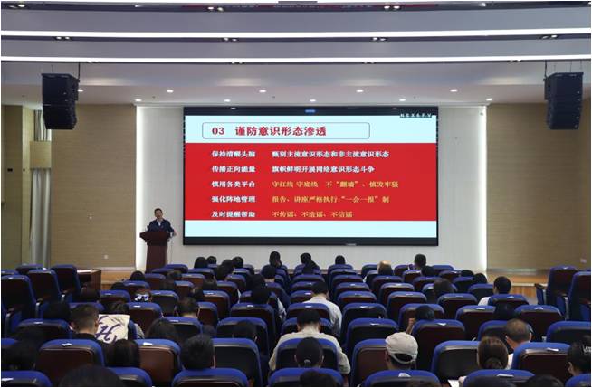 意识形态工作是党的一项极端重要的工作。吴宝海书记指出要提高政治站位,扛起政治责任,严格落实意识形态工作责任制,在思想认识上强化、在落细落实上发力、在形成合力上用功,做好意识形态的风险排查和分析研判。