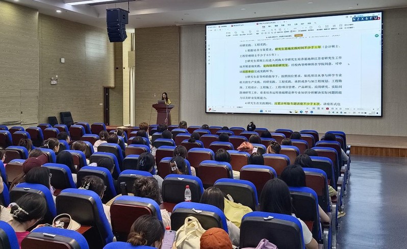 研究生培养秘书田然老师针对基地实践期间的学籍管理、论文工作环节和日常生活管理等方面向同学们做了详细解读。在基地实践期间,每位研究生需听取规定次数的专题讲座,登陆系统填写各环节日志和记录,同时与校内校外双导师保持紧密联系、推进学位论文撰写工作。在日常生活管理方面,田老师提醒各位同学认真学习《开云kaiyun官网全日制专业学位硕士研究生基地实践手册》,遵守学校和基地单位双方的制度规定,注意用水用电安全。