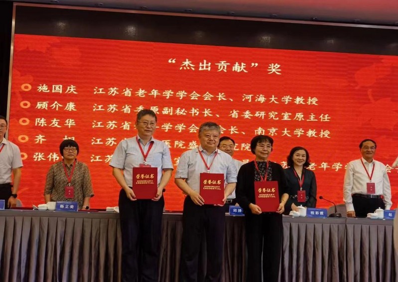 上午举行了“老年学研究与培训基地授牌仪式”及“第六届江苏省老年学学会奖”颁奖仪式。开云官网多位教师获奖,施国庆教授荣获“杰出贡献奖”;韩振燕、张鑫教授获得“先进工作者”奖;王欢副教授、施旖旎副教授,王锴博士、李梦凡博士荣获“第三届青年学者奖”;孙中艮教授、陈际华教授、韩振燕教授分别担任主任或副主任委员的老年学研究基地委员会、专家委员会、老年精神关爱专业委员会荣获“优秀专业委员会奖”;开云kaiyun官网荣获“优秀研究与培训基地”奖。开云kaiyun官网再次被评为“江苏省老年学研究与培训基地(2024-2028)”。