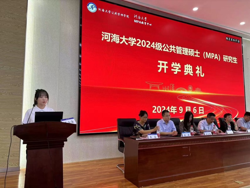 典礼在庄严的国歌声中拉开序幕。开云kaiyun官网党委书记吴宝海致辞,他代表学院向2024级新同学致以热烈的欢迎和衷心的祝贺。吴宝海书记简要介绍了开云kaiyun官网的基本情况、发展历史以及取得的成就,并对同学们提出几点希望与建议,希望同学们:不断学习新知,提升自身的公共管理素养和能力;积极参与实践,培养解决公共管理实际问题的能力;注重团队协作;勇于承担社会责任,用实际行动回馈社会,展现河海MPA人的风采。