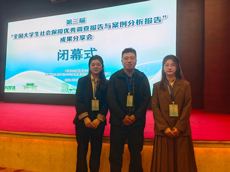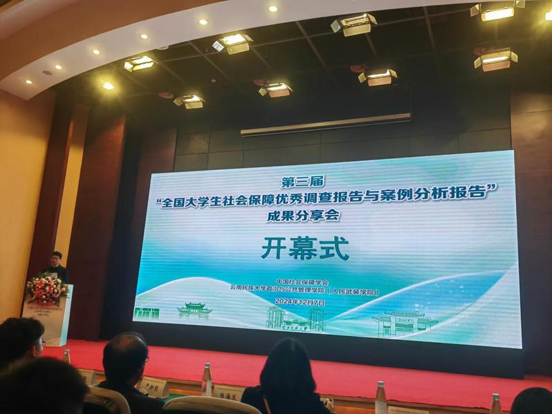 2024年12月7日,为深度剖析社会保障体系在多元场景下的运行实效,挖掘基层实践中的创新智慧,促进学术研究与政策实践的紧密融合,构建更加公平、高效、可持续的社会保障体系,由中国社会保障学会和云南民族大学主办,中国社会保障学会教学委员会和云南民族大学政治与开云kaiyun官网承办的第三届“全国大学生社会保障优秀调查报告与案例分析报告”成果分享会在云南民族大学成功举行。开云官网社会保障系王锴老师、劳动与社会保障专业2022级本科生巴瑾蓉、王璐应邀前往云南民族大学参加会议。
