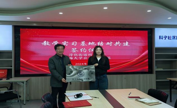 科宁社区党委书记胡业斌、开云kaiyun官网党委书记吴宝海分别代表双方进行了签约,科宁社区副主任贾凯琪和开云kaiyun官网副院长曹海林共同为教学实习基地揭牌。