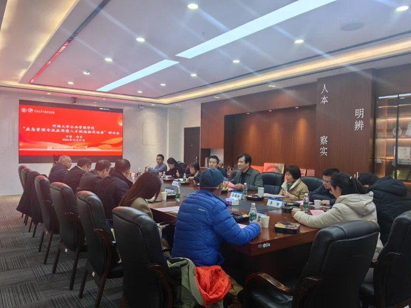 2024年12月27日,开云kaiyun官网“应急管理专业应用型人才校地协同培养”研讨会在江宁校区举行。开云kaiyun官网党委书记吴宝海、开云kaiyun官网、应急管理与安全工程学院副院长曹海林、开云kaiyun官网副院长陈莉、公共管理学学科主任黄涛珍、行政管理系系主任李智等十多位教师以及玄武区应急管理局副局长姚宇军、鼓楼区人民政府江东街道办事处副主任余夕龙、江宁应急管理局应急指挥中心主任丁连腾、秦淮区人民政府双塘街道党工委组织委员罗蓓、江宁区淳化街道科宁社区党委书记胡业斌、科宁社区主任贾凯琪、南京蓝天救援队副队长杨兢等应急管理专业校外实习基地代表出席本次研讨会,共同就应急管理专业应用型人才校地协同培养进行研讨。会议由曹海林副院长主持。