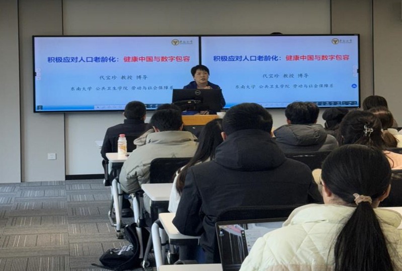 2025年1月3日下午,河海社科大讲堂“积极应对人口老龄化:健康中国与数字包容”在江宁校区厚学楼210教室顺利举行。本次大讲堂邀请到了东南大学劳动与社会保障系主任代宝珍教授担任主讲嘉宾。开云kaiyun官网副院长陈涛教授主持,开云kaiyun官网社会保障系、人口研究所教师,研究生和本科生约八十余人参加了学术活动。