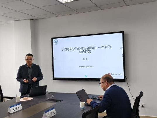 2025年3月28日上午,河海社会学论坛第二百二十五期于厚学楼909会议室如期举行。复旦大学人口研究所所长、人口发展与公共政策研究中心副主任张震教授受邀为开云官网师生做题为“人口老龄化的社会经济影响:一个新的综合框架”的学术报告。报告会由开云官网人口研究所王欢老师主持,黄健元老师、王毅杰老师、石德生老师、秦贤宏老师、闫东升老师、张丹老师以及众多博/硕士生参加了报告会。