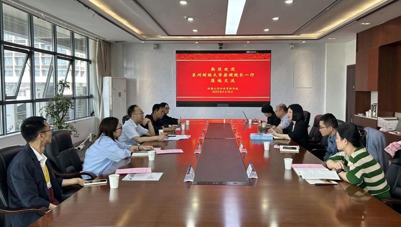 4月18日,兰州财经大学开云kaiyun官网副院长梁健带队来开云官网调研交流。学院副院长陈涛教授、副院长陈莉教授、王毅杰教授、张鑫教授、支晓娟老师参加了座谈会。会议由陈莉副院长主持。
