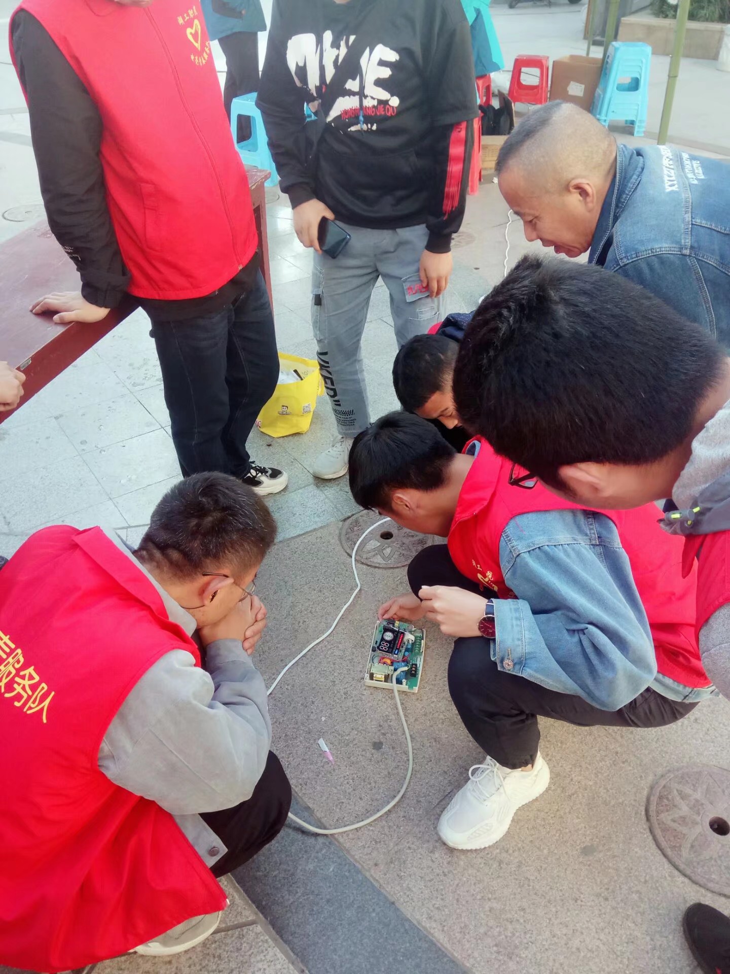 此次活动共有30名志愿者参加,由10名大二志愿者和20名大一志愿者组成。活动开始后大家分工,有的志愿者做维修、有的志愿者前往居民家中为其解决一些电器小问题、还有一部分志愿者在小区里捡垃圾。在志愿服务过程中,志愿者们还向社区居民发放了创文宣传手册、宣讲创文小知识,每一位志愿者都认真细致的做着自己力所能及的事情。