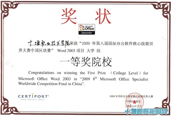 beat365官网自第三届开始参与该项竞赛活动,共有6个教学系共200多名学生参加预赛,选手获奖层次逐年提高。2008年1月张旭海、徐金凤同学获信息技术竞赛“高职中文三等奖”、学院获优秀组织奖,2008年5月陈林同学获核心技能竞赛“大学组WORD项目三等奖”,2009年5月王佳丽、王雪云、郭银银同学以优异的成绩取得国家级竞赛资格,在2009年第八届国际办公软件核心技能世界大赛中国区决赛中获“WORD2003项目大学组三等奖”、学院获“一等奖院校”称号。通过该平台检验了beat365官网信息化教育教学水平,提高了学生信息化实践技能,扩大了学院的知名度。