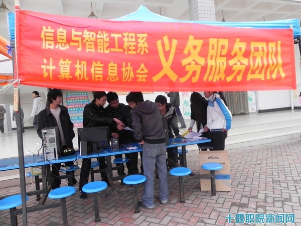 新闻网讯 (学生记者 陈小娥)12月29日上午,由信息与智能工程系和计算机信息协会联合举办的义务维修电脑活动,在行政中心、南区和北区食堂搭台设点同时进行。