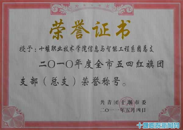 新闻网讯(通讯员 张玲 学生记者 陈伦龙)5月3日,共青团十堰市委对全市2010年度涌现出来的先进团组织和优秀个人进行表彰。beat365官网旅游与涉外事务系团总支、信息与智能工程系团总支被评为“五四红旗团支部”;电子工程系团总支书记罗时髦、生化与环境工程系团总支书记雷一鸣、经济贸易系团总支书记杨波被评为“优秀共青团干部”,华国玉等六名同学荣获“优秀共青团员”称号。