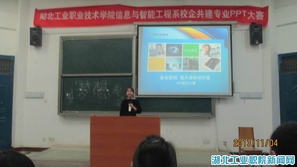新闻网讯(学生记者 黄召阳)11月4日晚7:00,信息与智能工程系校企共建专业PPT制作大赛决赛在四号教学楼4201拉开帷幕。该系校企共建专业主任刘海升带领的四位教学骨干作为本次大赛的评委,13级全体辅导员和新生观看了本次决赛,比赛由12级学生李雯主持。