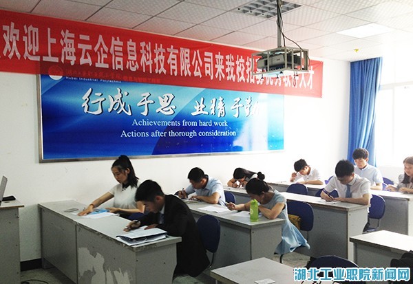 新闻网讯(通讯员 熊慧)学生身着职业装、手持简历,自信大方地候场,准备迎接人生第一次顶岗实习面试……5月25日上午8时,以上海云企信息有限公司的总经理胡燕飞及技术总监王彬彬,武汉源启科技有限公司实施部门经理石瑞和人事专员耿娜为主的招聘小组来到信息与智能工程系校企共建专业进行了现场招聘会。此次招聘的岗位是.NET开发和软件实施,预计招收20名学生,该专业.NET加强班和软件实施加强班的学生积极应聘,并当场进行了技术笔试题的测试和现场的技术面试。