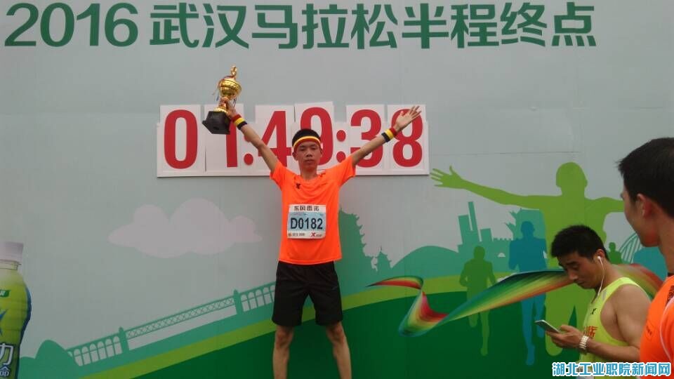 武右苗一直以来都是马拉松爱好者,每天坚持跑步,得知此次比赛在我省举行,便前往参加,历经21.0975千米,用时1小时48分20秒,比赛中腿部抽筋,但还是咬牙坚持下来,他说道:只有跑完全程,才能体会到运动的乐趣,挑战自我。做为一名大学生,马拉松精神也应该体现在我们的学习和生活中,找准目标并坚持不懈的努力,终将实现我们所想。