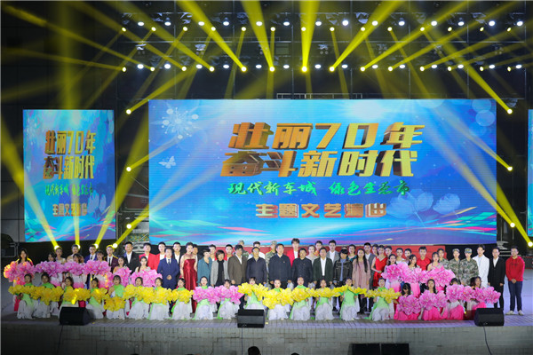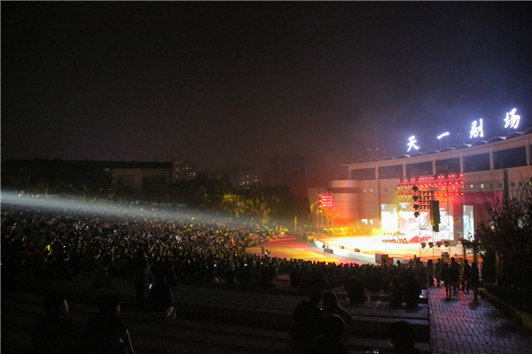 新闻网讯(文/图 记者曾刚学生记者杜凤麟)在新中国成立七十周年、十堰市建市五十周年之际,11月4日晚六点半,由学校党委宣传部、学生工作部、共青团主办,大学生成长指导中心、马克思主义学院承办的“壮丽70年,奋进新时代”主题文艺晚会在天一剧场举行。全体校领导、学校近万名师生观看了这次晚会。