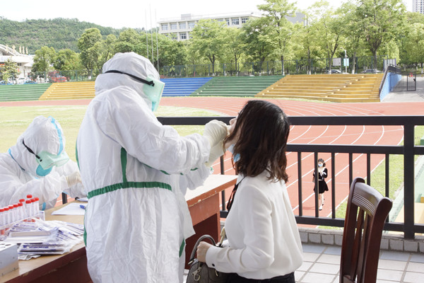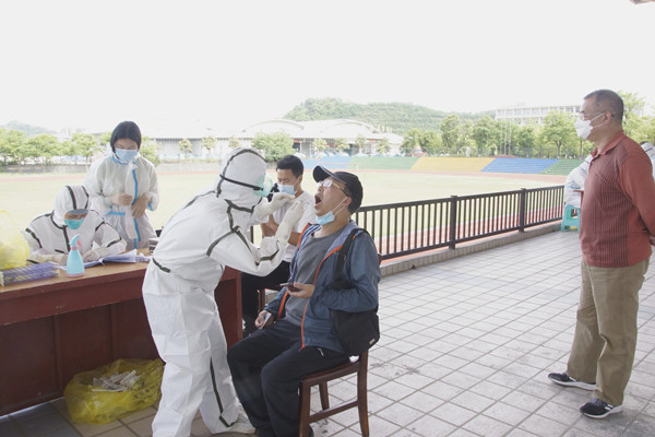 根据检测工作方案要求,十堰市疾控中心于11日上午8:30-11:00和下午15:00-17:00在学校北区运动场进行了取样。结合教育、卫健部门指导意见和教师网络教学工作实际,学校组织教职工分时分段、分期分批、错时错峰入校接受检测取样。综合考虑人流量、交通、消毒、通风等各种因素,在充分听取教职员工以及专家意见基础上,选定露天的北区运动场作为检测场所,为教职员工提供安全、卫生、便捷的检测条件保障。