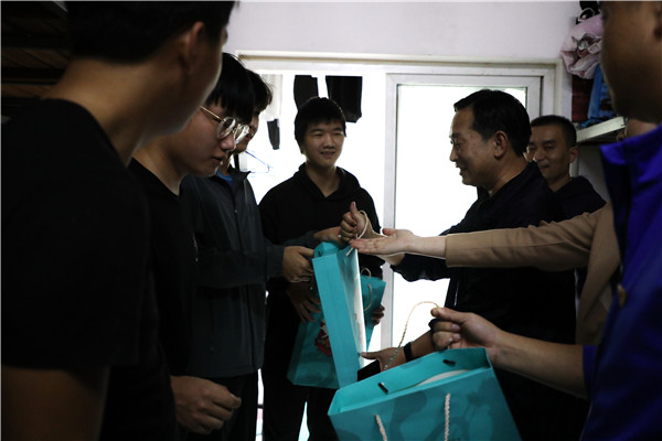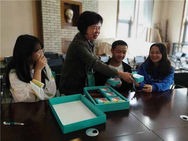 “虽然身在外地,但仍然感受到了家的温暖。我们不会辜负领导、老师们的期望和父母的嘱托,要勤奋学习,刻苦拼搏,努力做一名有理想、有抱负的合格大学生”,从校长郑昕手中接过月饼后,旅游商贸学院2019级学生邓张莹兴奋地说。