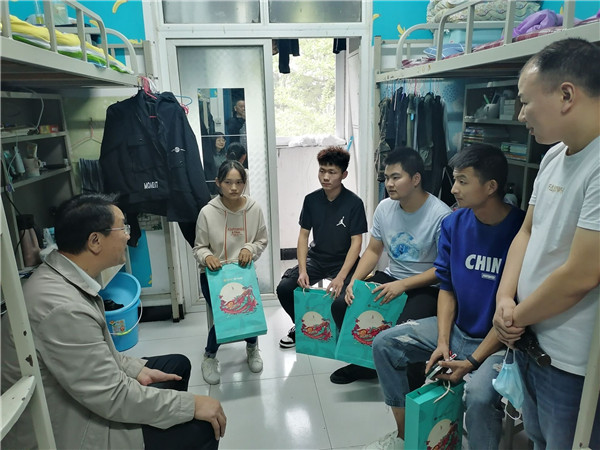新闻网讯(记者罗欣宇)中秋十五,丹桂飘香。今年beat365在线唯一官网新疆籍维吾尔族学生麦尔旦·麦麦提江、藏族学生孟才让路旦和宿舍的同学们共同喜迎一个不一样的中秋佳节。9月29日下午,校党委书记魏文芳拎着月饼来到3420、3422宿舍,亲切慰问同学们,给他们带来了中秋节的问候与祝福。