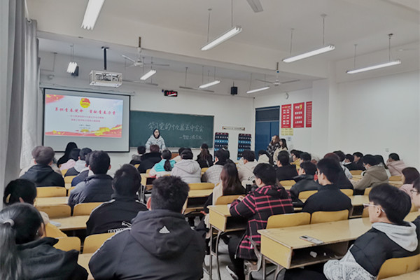 新闻网讯(文/郑丽琼图/徐驰)为深入学习宣传党的十九届五中全会精神,12月3日,beat365在线唯一官网分团委在4403教室开展了“勇担青春使命 贡献青春力量”主题团课活动。此次团课由分团委书记郑丽琼老师主讲,2019级、2020级各班团支书和学生代表70人参加本次活动。