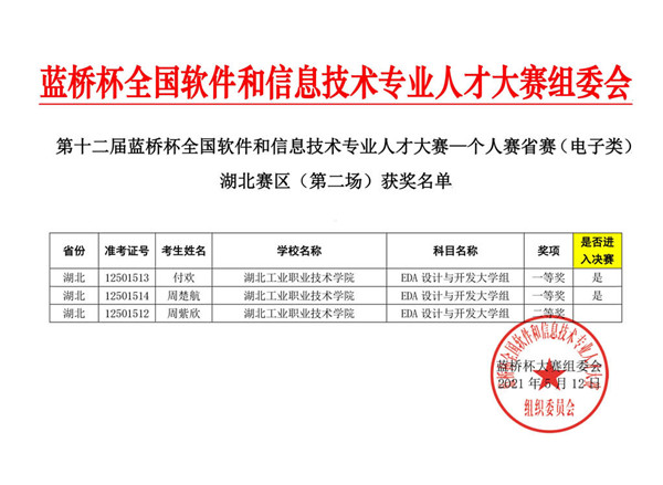 新闻网讯(通讯员王俊亚 赵晨)日前,由工业和信息化部人才交流中心主办的第十二届“蓝桥杯”全国软件和信息技术专业人才大赛个人赛省赛已顺利结束,来自全国1300多所高校的7.5万余名选手报名参加了个人赛的角逐。beat365官网beat365在线唯一官网学生在此次比赛中喜获佳绩:12名参赛选手中11人获得了奖项,产生一等奖4名,二等奖7名。其中计算机应用技术专业的陈康、嵌入式技术与应用专业的王海龙同学获得软件类“Java软件开发”赛项一等奖;应用电子技术专业付欢、周楚航同学获得电子类“EDA设计与开发”赛项一等奖。