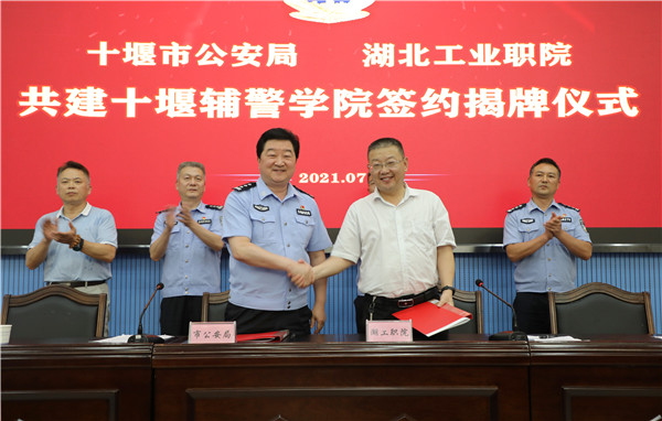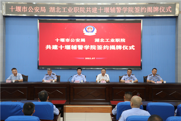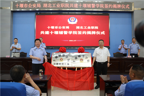在与会嘉宾的共同见证下,校警双方领导签署了人才培养合作框架协议,并为十堰辅警学院技能培训基地成立揭牌。