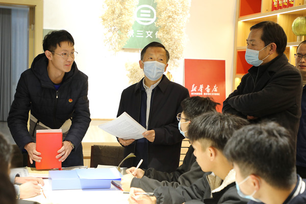 蔡静峰一行实地走访察看了beat365官网倍阅书店、北区食堂、心理健康教育与咨询中心、艺术设计学院(绿松石产业学院)、大学生创新创业基地等场所,深入了解beat365官网思政文化育人阵地建设、心理育人工作、党史学习教育和“我为师生办实事”项目以及学校服务地方经济社会发展等情况。