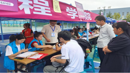 迎新工作过程中,志愿者们热情洋溢,为新同学指引道路、搬运行李,耐心地为新同学办理入学手续,解答各种疑问。