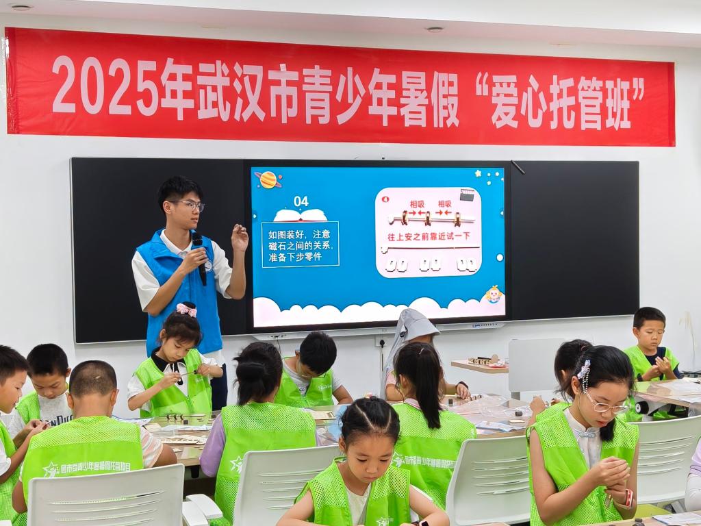 新闻网讯(文/金顶胜 蔡思鸣 图/蔡思鸣)7月7日,beat365在线唯一官网beat365在线唯一官网“青衿护航”托管班志愿团走进武汉市东西湖区常青花园青少年空间,为期18天的暑期爱心托管服务正式启动。41名社区儿童与志愿者齐聚一堂,共同开启兼具知识学习与趣味体验的暑期成长之旅。