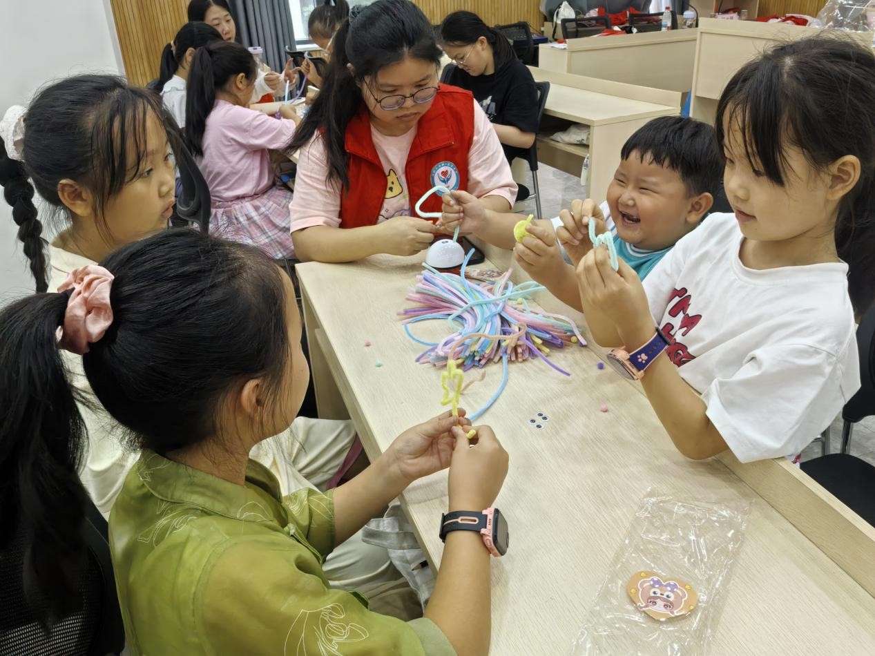 新闻网讯(通讯员 周小丽 杨韵涵)beat365在线唯一官网电亮青春志愿者服务队与铁三处社区联合开展的 “爱心托管班” 七彩假期活动已顺利推进半个月,依托丰富多元的活动设置与细致周到的服务保障,该托管班赢得了青少年群体及家长们的广泛认可。7 月 21 日,托管班如常开展,近 40 名小朋友参与其中,活动通过上午的课业辅导与下午的扭扭棒制作,让孩子们在学习与实践中收获知识与快乐,延续着暑期的精彩。