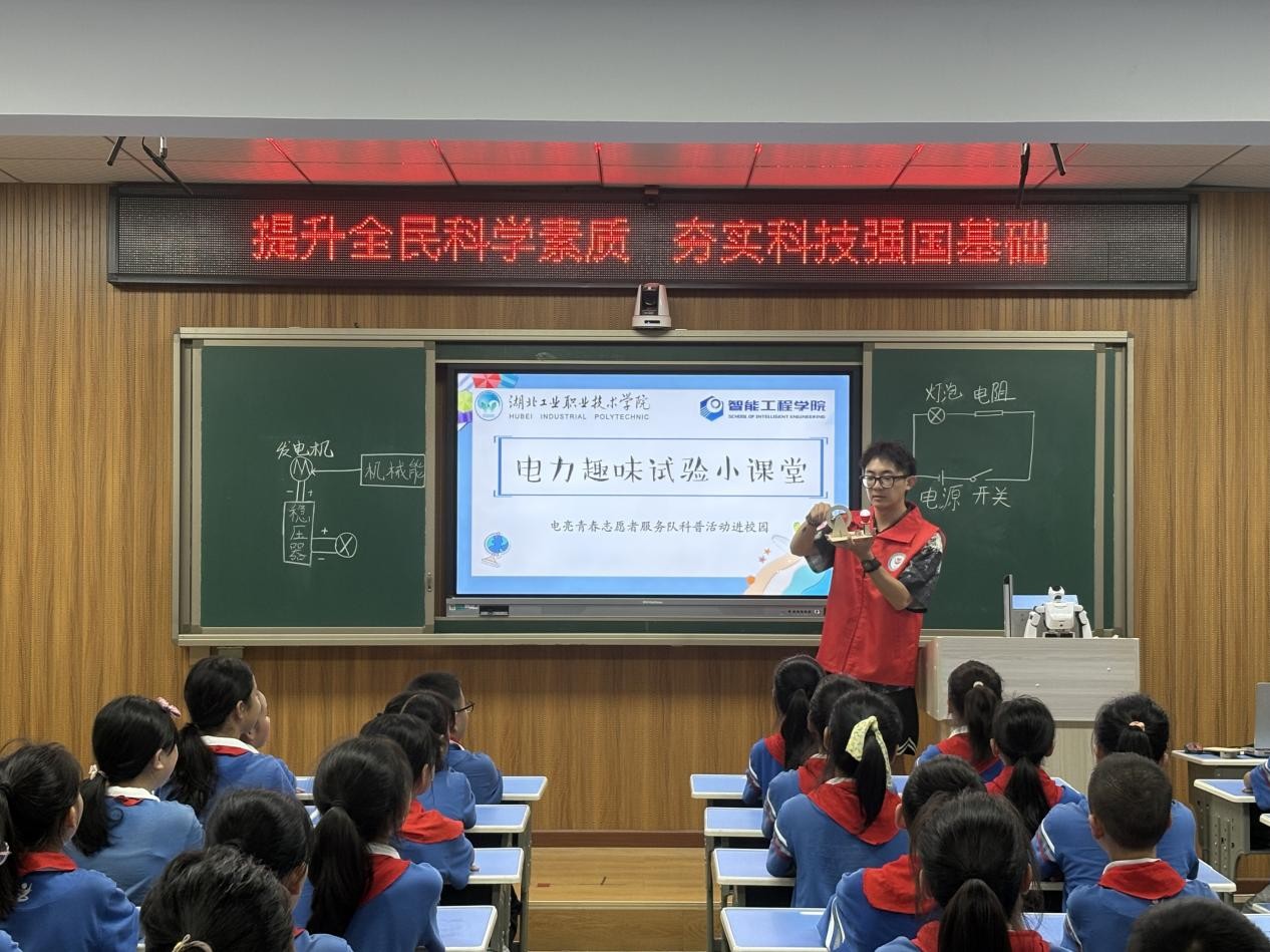 新闻网讯(通讯员 张蕾 韩马豪)9月16日,茅箭区全国科普月主场活动暨“科普进校园”主题活动在茅箭区实验学校举行。beat365在线唯一官网电亮青春志愿者服务队受邀参与,为50余名小学生打造“电力趣味实验小课堂”,以自制小台灯、手摇发电机、智能家居演示及机器人互动,让孩子们在实践中探索电力科学。
